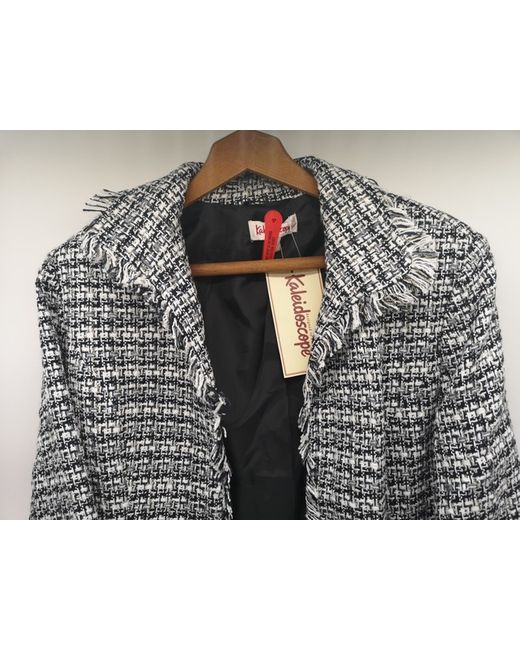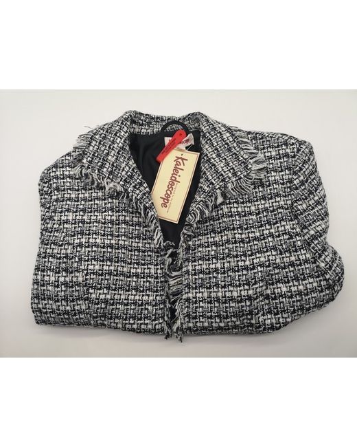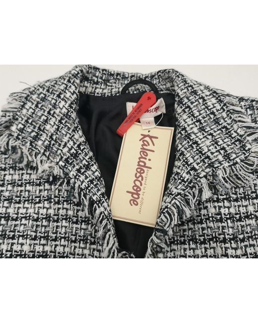 Elevate your wardrobe with this stylish Kaleidoscope jacket. The navy blue and white geometric pattern is eye-catching, while the fringe and padded shoulders add a touch of elegance. The jacket is made of a knit fabric that comprises 50% cotton, 46% acrylic, 3% polyester, and 1% nylon, and is fully lined with polyester for added comfort. This short-length jacket is perfect for both casual and formal occasions, and its size 14 fit is suitable for women of all sizes. Whether you're dressing up for a business meeting or going out with friends, this jacket is a versatile addition to your outfit. Don't miss out on this unique piece from Kaleidoscope.