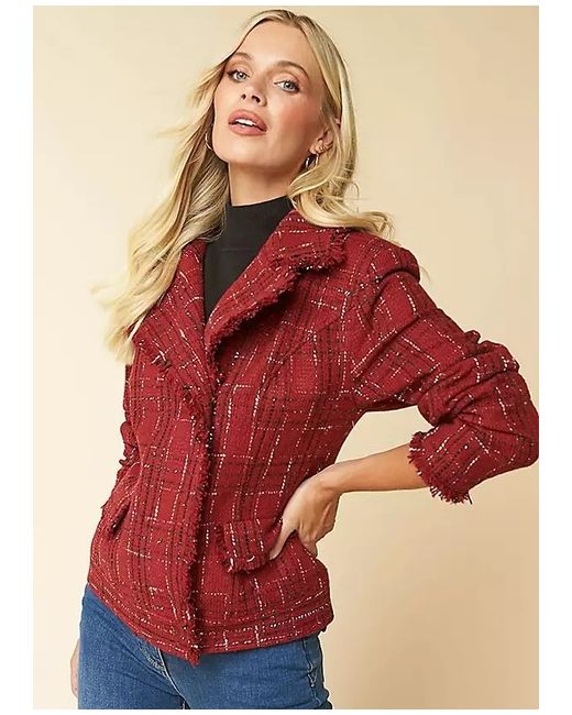 This biker jacket from Kaleidoscope has a trendy boucle texture in red, making it a stylish and versatile addition to your wardrobe. The jacket is made of an acrylic blend material, making it perfect for a chilly day out. It is a regular fit jacket in size 12, perfect for women of all ages. Whether you need a jacket for a day out with friends or a casual day at work, this is the perfect fit for you.