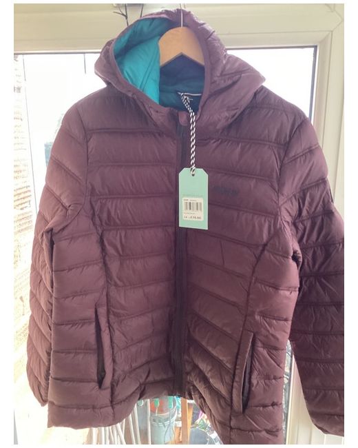 Ladies quilted jacket mulled wine outer with turquoise lining.