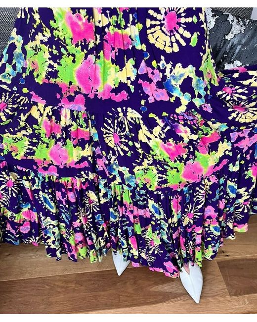 MAXI BOHO DRESS. Long Maxi Tiered full skirt. Viscose flowy fabric hang and moves beautiful. Elasticated back waist panel. Beautiful abstract arty prints on Italian fabric. SIZE M and fits best UK 10 – 12.
