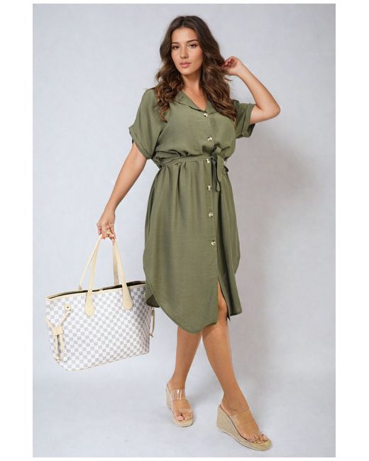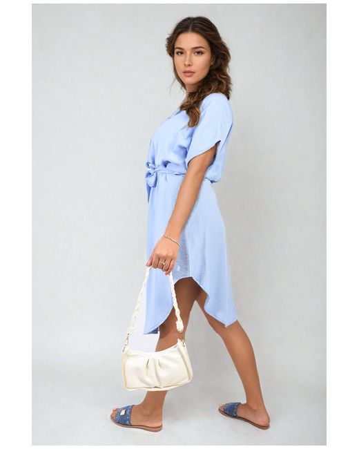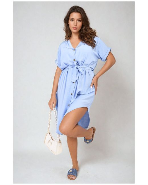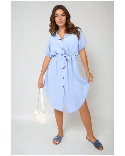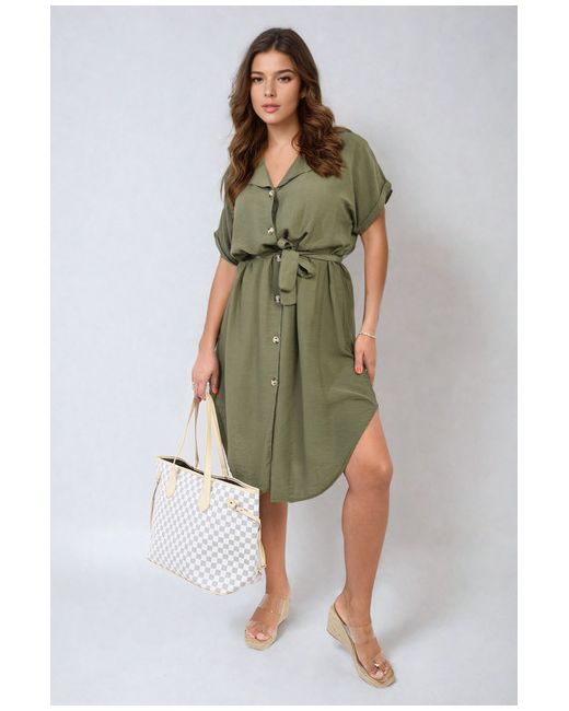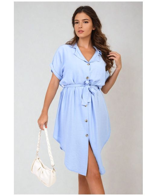 Crafted from lightweight and breathable fabric, this dress is perfect for warm weather. The button-down front allows you to adjust the neckline to your liking, while the belted waist adds a touch of definition to your silhouette.