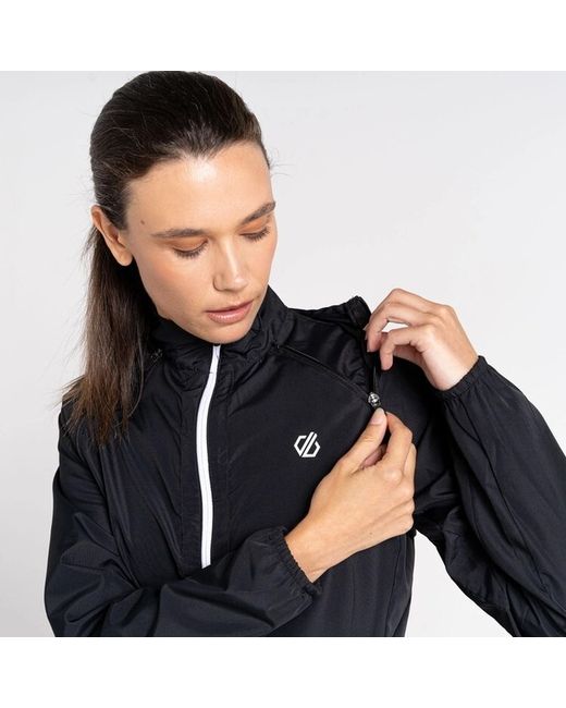 The black jacket features a short length and a zip closure for a comfortable fit. This jacket is made with durable polyester material and is water-resistant, making it perfect for walking in the rain.