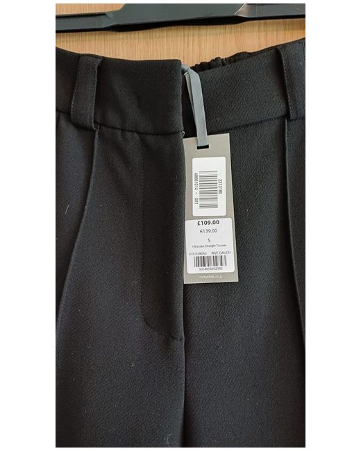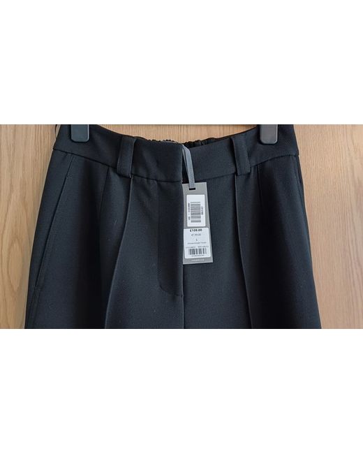 These Mint Velvet women's lined work trousers in black, size small, are perfect for a business setting. Made of polyester, they feature a straight leg style with a 29-inch inside leg. The dress pants are designed for autumn, winter, and spring seasons, providing comfort and style for professional women looking for a versatile wardrobe option. Dry clean only.