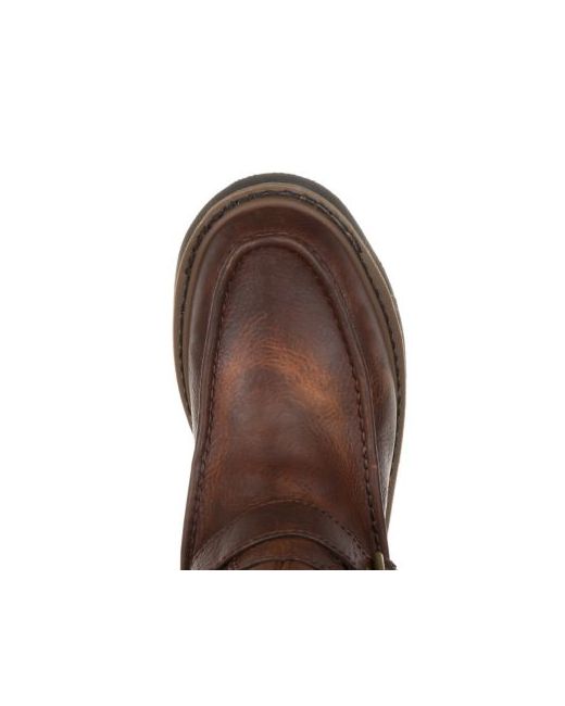 These stylish, soggy copper kettle colored boots are sturdy, comfortable and reliable, and honestly, we all need that in our lives. Standing at 10 inches in height, with a 15-inch calf circumference, the men's work boots are waterproof to keep your feet dry in snow, rain and damp days. They feature waterproof lining to make sure your toes stay completely dry even in mud, and include Georgia waterproof system, which will circulate air through the boot while keeping humidity out. The zip up work boots also have and adjustable leather in-step strap and a steel shank for arch support. The waterproof work boots also have a removable polyurethane orthotic insert so any long days seem short. The comfortable men's work boots are made with Goodyear welt construction, and have a solid brass zipper, so they'll be sure to last long. The men's boot comes with a nylon pull loop and a proprietary oil resistant "X-10" outsole as well which will keep these boots together for a long time.
