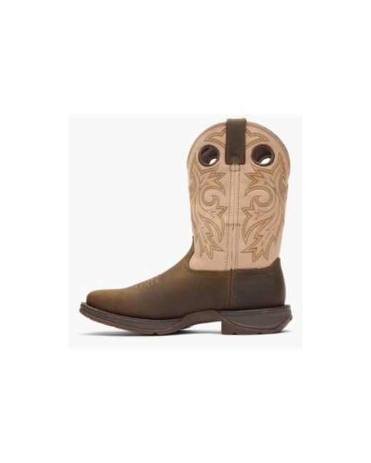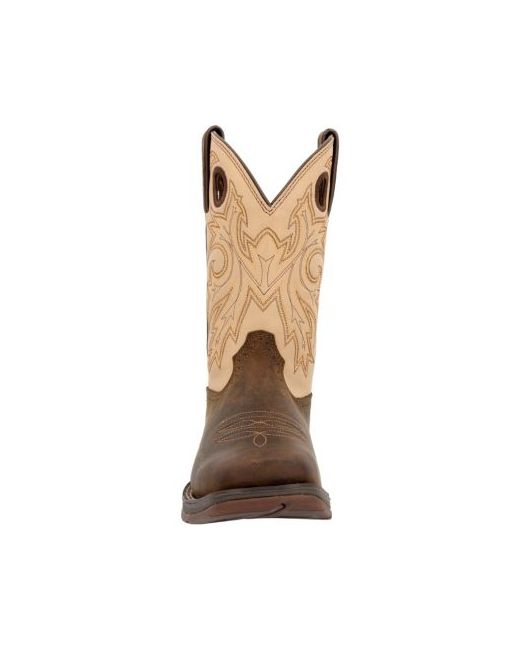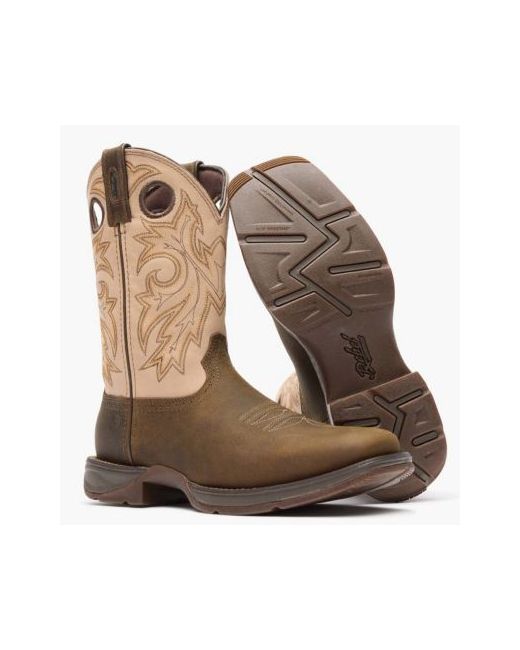 Pull on lightweight comfort in the men's 11" Coffee/Bone Durango Rebel collection. This style features full-grain leather, a soft mesh lining, the Durango X-Pand System for easy on/off, the Durango Advanced Comfort System Footbed with InsulKul for temperature regulation and a cushion flex insole. The shank is tempered steel and includes a rolled shank area. This style is finished off with an Eva midsole, slip, oil and abrasion-resisting rubber outsole, double row sole stitch, 1 1/2" Rocker heel and square toe..