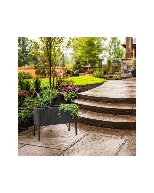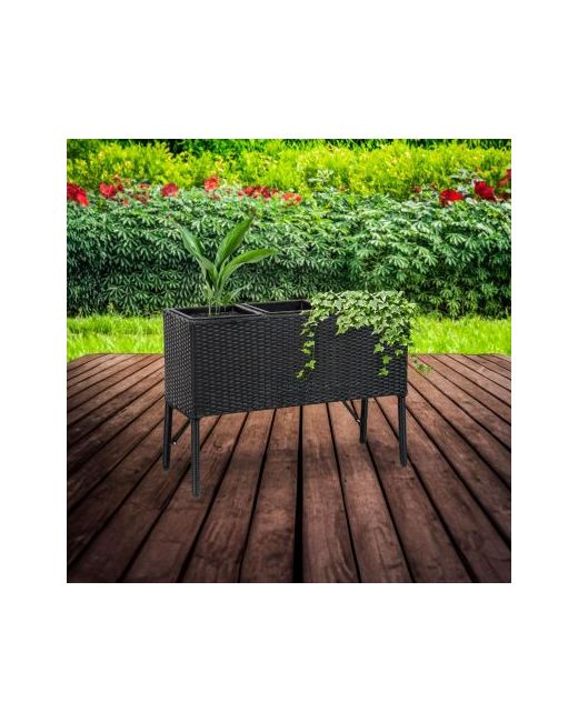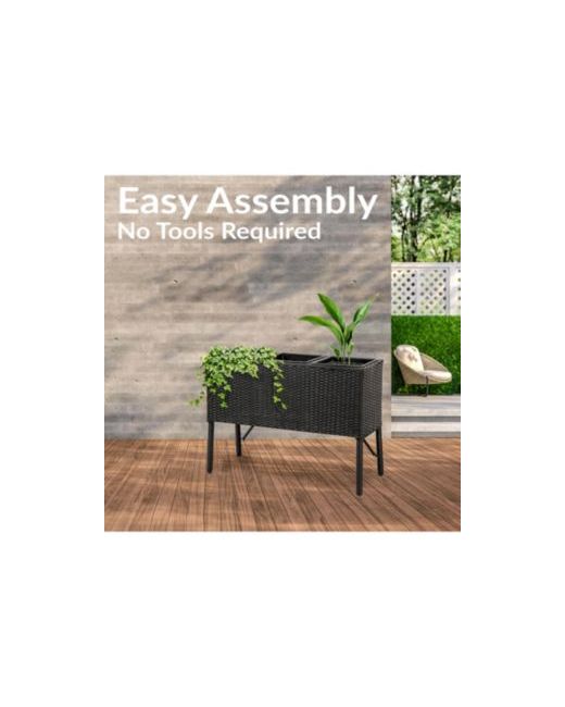 Grow a variety of beautiful plants, herbs, and flowers with this elegant raised garden planter. This planter s compact size makes it a stylish accent for a variety of locations. Made from durable polypropylene with a sturdy steel frame, this sophisticated planter can be used either indoors or outdoors. It features three removable square plastic inserts that make planting easy. Plus, the elevated garden planter is easy to clean and maintain. Each insert can hold up to 0.315 cu ft of soil (2.36 gallons). The classic black polypropylene wicker look will complement any decor style. The lightweight design makes it easy to move the planter from place to place. Add this lovely planter to the deck, patio, front porch, living room, or sunroom. No tools or assembly is required. This stylish garden planter is ready for use straight out of the box.