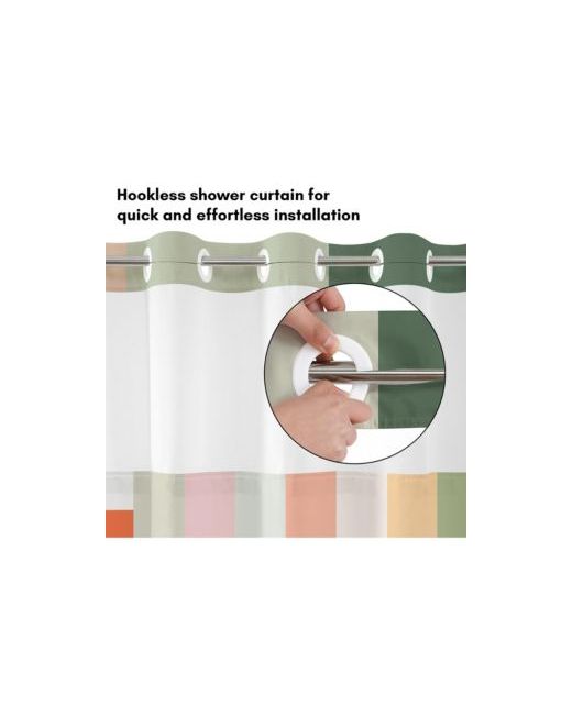Multicolor Hookless Shower Curtain Abstract Pink Green Orange with Sheer Panel Snap Liner and Grommets 100
