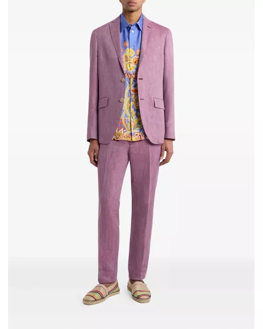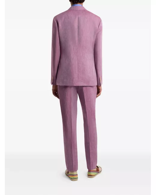 mulberry pink front button fastening jetted chest pocket two front flap pockets English rear vents