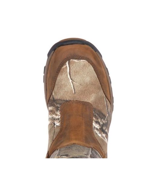 Before you head out to an area where snakes hang out, be sure you're wearing the Rocky Retraction Waterproof Side-Zip Snake Boot. Rocky created this tall snakeproof waterproof boot to keep you safe, dry and comfortable. The boot protects you from most bites from venomous snakes inhabiting North America. Made of brown full-grain leather and 900-denier nylon, this 17-inch boot has the height and toughness you want. The nylon features Realtree Xtra camouflage, making it a great hunting boot. In addition to snake protection, you get water protection with this footwear. Made with Rocky Waterproof construction, this is guaranteed to be a waterproof boot. Walk through mud and water you're covered in this waterproof snake boot. You'll find this to be a surprisingly comfortable snake boot, too. An EnergyBed footbed returns energy with each step while the memory foam will form to your foot. The men's boot lining is moisture-wicking to fight sweat. A nylon shank supports your arch.