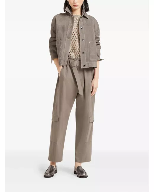beige concealed fly and button fastening detachable and adjustable waist belt two side flap pockets two rear flap pockets