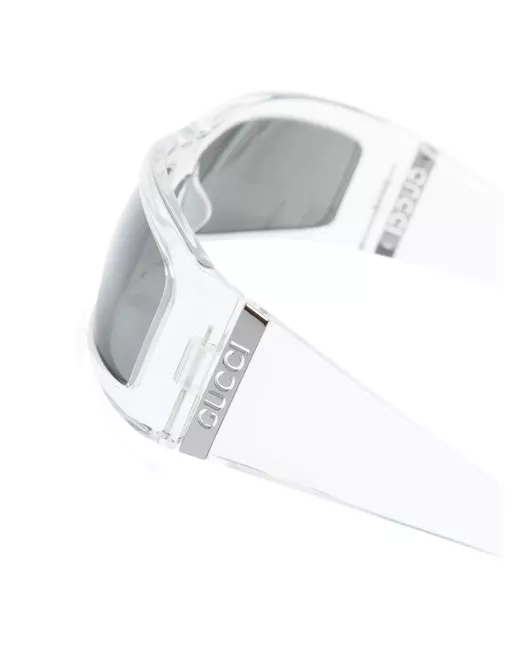 transparent design acetate rectangle frame grey tinted lenses logo plaque at the arm straight arms curved tips These glasses come with a protective case.