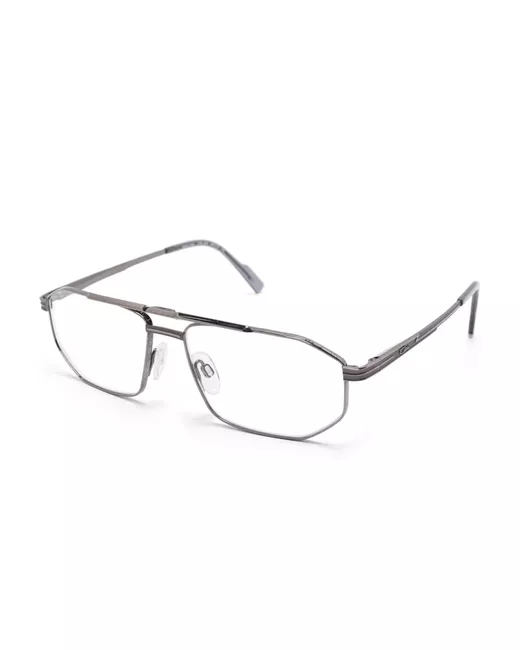 silver-tone acetate/metal pilot frame double bridge nose pads clear lenses logo-embossed arm curved tips These glasses come with a protective case.