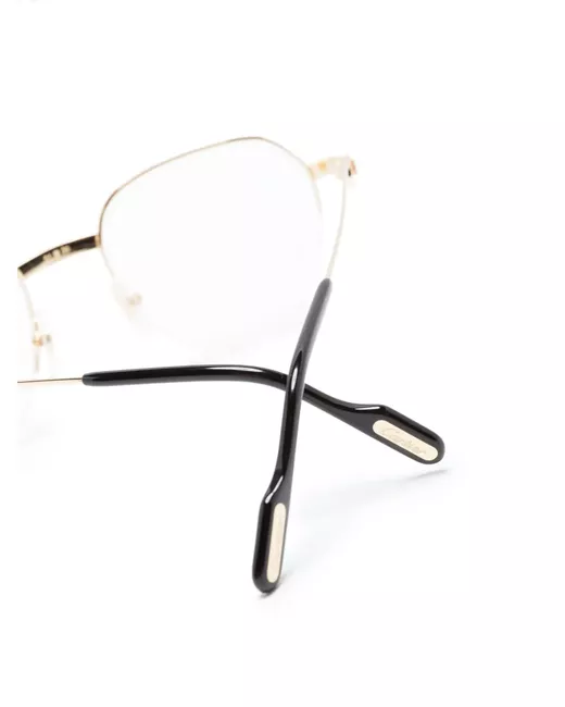 gold-tone metal round frame half-rim design nose pads straight arms curved tips engraved logo These glasses come with a protective case. All glasses from FARFETCH are sold as non-prescription frames.
