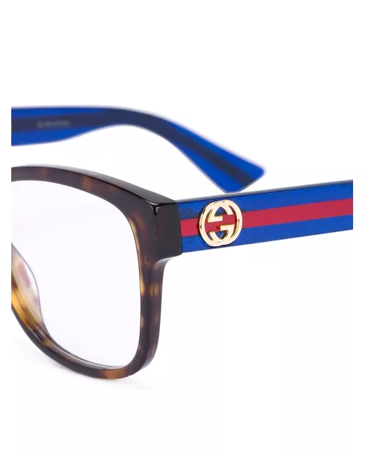 brown/multicolour signature Web-stripe trim clear lenses square frame tortoiseshell effect signature Interlocking G logo sculpted arms curved tips All glasses from FARFETCH are sold as non-prescription frames. These glasses come with a protective case.