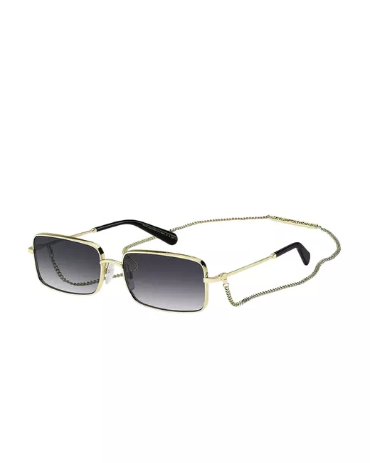 gold-tone nose pads grey tinted lenses cable-link chain These glasses come with a protective case.