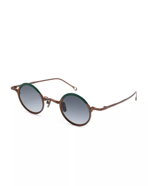 bronze-tone titanium round frame gradient lenses nose pads straight arms curved tips These glasses come with a protective case.