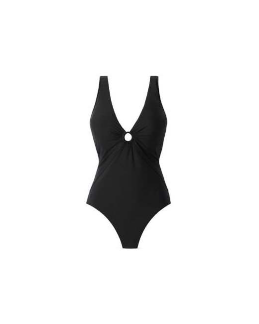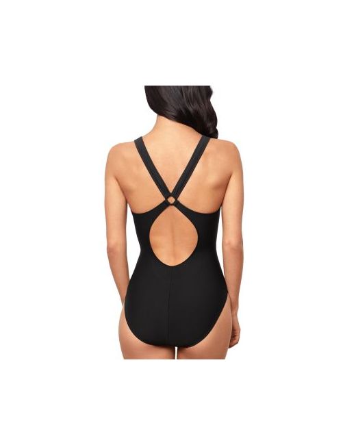 Magicsuit Solid Blakley One Piece Swimsuit.Color:Black.Size:8.Material:Front: 73% nylon/27% spandex; drape: 62% nylon/38% spandex; back: 83% nylon/17% spandex.Swimsuits.