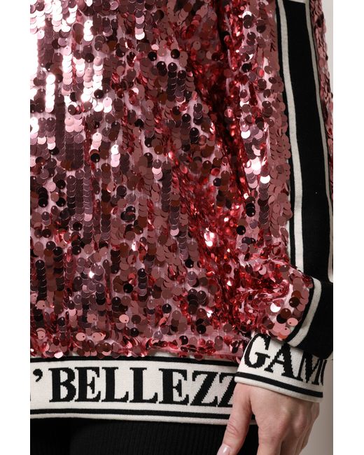 DOLCE & GABBANA Absolutely stunning, 100% Authentic, brand new with tags Dolce & Gabbana crew neck sequin pullover sweater. Art#: F9D82T FLSA8 Model: Pullover sweater Color: Pink Material: 100% Polyester Lining: 100% Silk Logo details Made in Italy Very exclusive and high craftsmanship