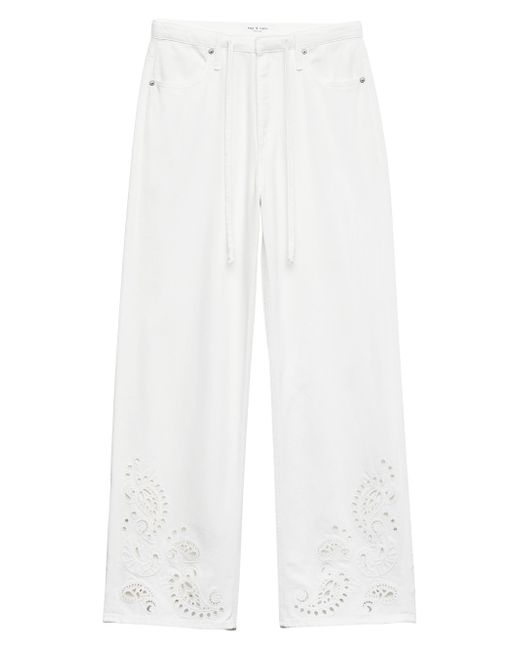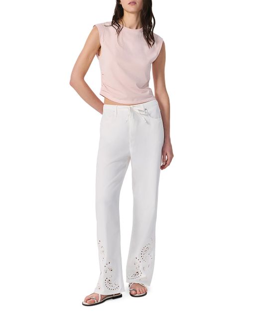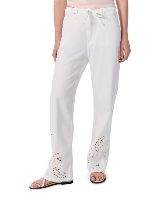 Crafted of a light cotton blend, rag & bone's Ultra Featherweight Phoebe Drawstring pants feature a drawstring waistband and a relaxed fit. This playful look highlights the cuffs with eyelet detailing. Drawstring waistband, belt loops Front scoop pocket Back patch pockets Pulls on 60% cotton/40% lyocell Hand wash Imported SIZE & FIT Rise: about 12" Inseam: about 30.5" Leg opening: about 20" Model measurements: 5'10" tall Model is wearing a US size Small. Contemporary Sportswear - Denim And Bottoms > Rag & Bone > Saks Fifth Avenue > Barneys. rag & bone. Color: White Eyelet. Size: XXS.