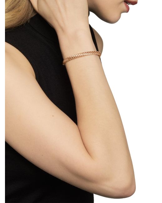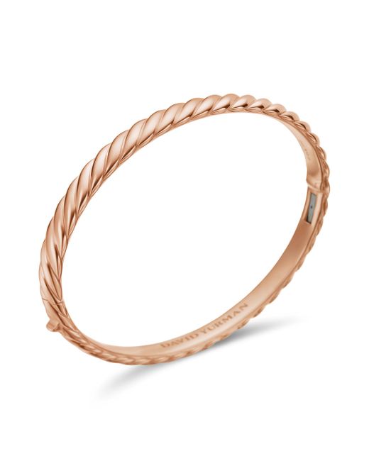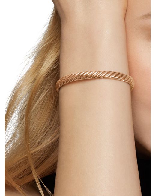 In Sculpted Cable, David Yurman transforms his signature design motif into a carved form. The effect is an entrancing wave like pattern that retains the dimensional look of Cable's original helix. 18-karat rose gold Bracelet, 6.2mm Hinge opening Imported ABOUT THE BRAND David, a sculptor, and his wife, Sybil, a painter, launched their innovative jewelry brand in 1980 in New York City. Since then, the American design house has pioneered cutting-edge collections-from its iconic combination of sterling silver and diamonds to signature pinky rings. Today, with their son Evan, the Yurmans continue to deliver timeless pieces inspired by nature, art, ancient symbols and Manhattan's stunning architecture. Lsd Jewelry - David Yurman > David Yurman > Saks Fifth Avenue > Barneys. David Yurman. Color: Rose Gold. Size: XL.