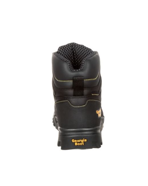 For amplified comfort, give these boots a try. This composite toe boot looks like a hiker but performs like a work boot. Our Ergo-fit safety toes are tapered for a better range of motion and the ergonomic design matches the contours of feet. The Georgia Boot Amplitude's oil and slip resistant rubber outsole is versatile enough that it can be worn on weekends too. The Georgia Boot Waterproof System makes these black work boots ideal for hiking on wet, muddy terrains or working rain-soaked job sites. The Amplitude's sporty upper is made from full-grain leathers that are soft and easy to break in. With the Amp insole, these work hikers will provide outstanding comfort. A top layer of memory foam on our Amp insoles absorbs shock and cushions every step along the way. The Eva midsole and cement construction help with flexibility and makes these boots lightweight. The Georgia Boot Amplitude reflects the essence of Georgia Boot: it is durable, comfortable and always ready to work..