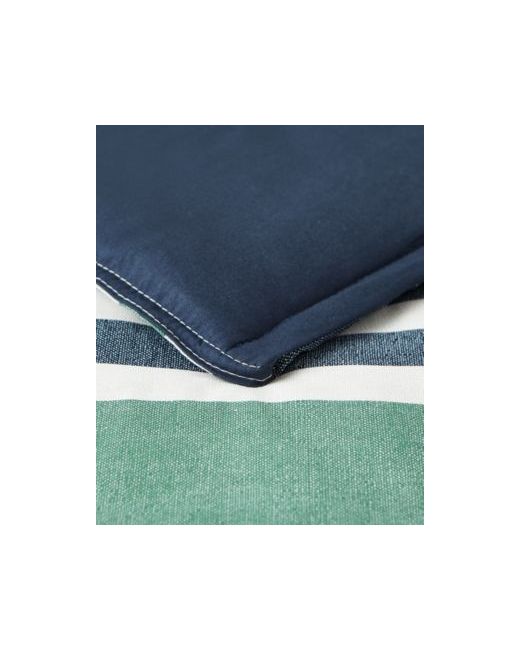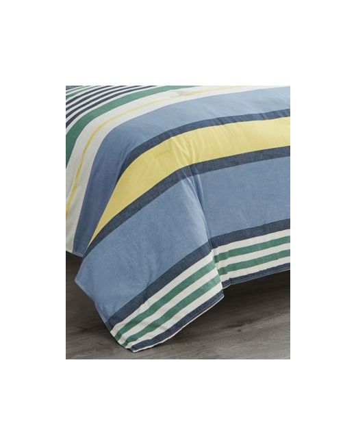 This high impact stripe is crisp and refreshing in an appealing multicolor palette of navy, chambray blue, and white with fashion accents of yellow and sea glass green. Made of durable cotton, this set is pigment printed for fresh color that lasts.