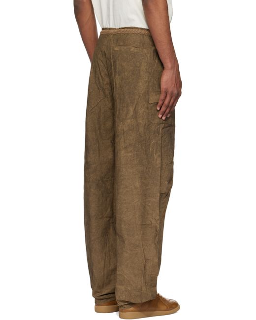 Cotton poplin trousers. Fading throughout. · Drawstring at waistband · Three-pocket styling · Zip fly · Darts at knees · Press-stud fastening at cuffs · Cargo pocket at outseam · Mesh patch pocket at outseam · Logo embroidered at back pocket Supplier color: Mocha