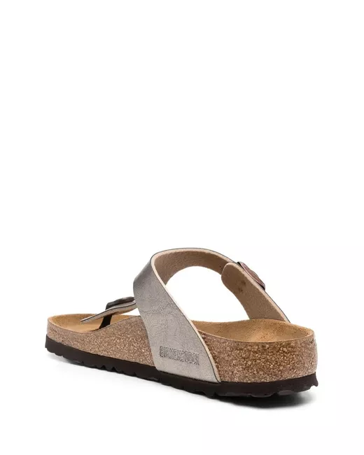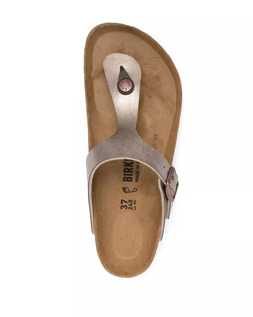 taupe brown leather logo plaque open toe thong strap slip-on style branded insole flat rubber sole