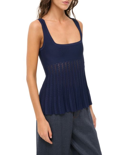 Staud's Ellen top features a scoopneck framed by fixed straps, a pleated lace body, and picot trimming. Scoopneck Fixed straps Pulls over Viscose/nylon Dry clean Imported SIZE & FIt About 25" from shoulder to hem Model measurements: 5'10" tall Model is wearing a US size Small. Contemporary Sportswear - Contemporary Collections > Staud > Saks Fifth Avenue > Barneys. Staud. Color: Navy. Size: XS.