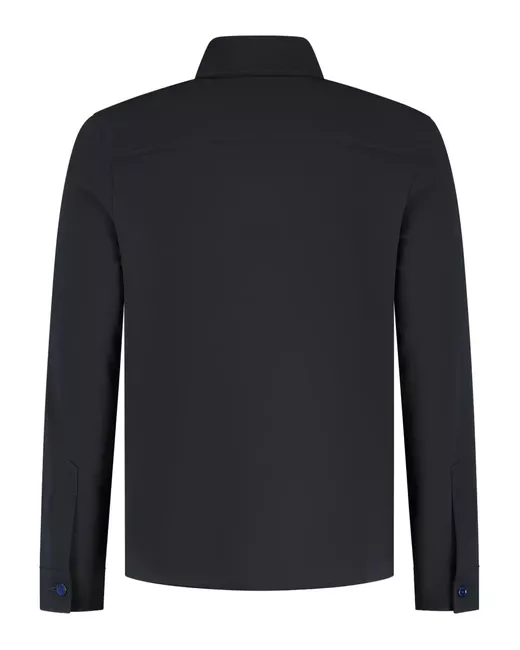 navy blue chest flap pockets buttoned cuffs classic collar long sleeves
