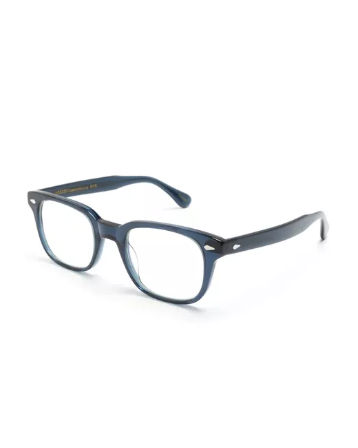 navy blue acetate square frame clear lenses sculpted arms curved tips These glasses come with a protective case. All glasses from FARFETCH are sold as non-prescription frames.