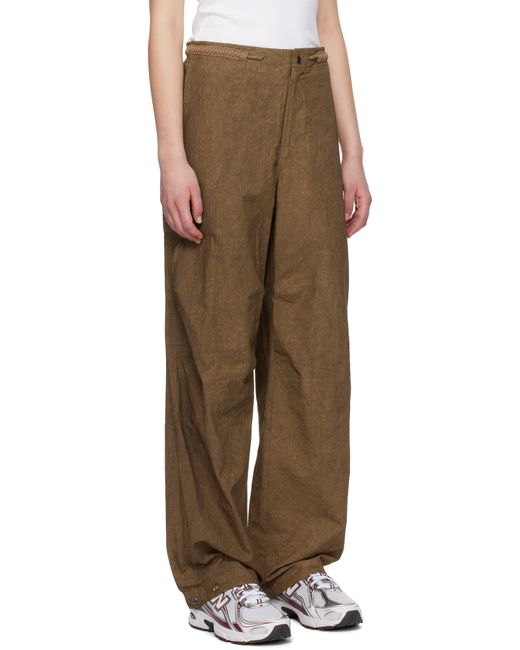 Plain-woven cotton trousers. Discoloration throughout. · Concealed drawstring and crocheted trim at waistband · Three-pocket styling · Zip fly · Darts at knees · Adjustable press-stud fastening at cuffs · Cargo pocket at outseam · Crocheted patch pocket at outseam · Logo embroidered at back waistband Supplier color: Mocha