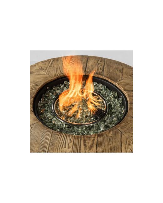 The Fire Pit table is a welcome addition to most outdoor living spaces. Adding warmth and a relaxing ambiance for any occasion. This product comes complete with a steel lid for increased functionality, red lava rock, and a polyester protective cover. Reaching up to 40,000 Btu to provide plenty of heat and adding warmth to your patio or backyard with this fire pit table. With its powder-coated metal construction, it's also a durable and high-quality choice. The Fire Pit table is a welcome addition to most outdoor conversation sets.
