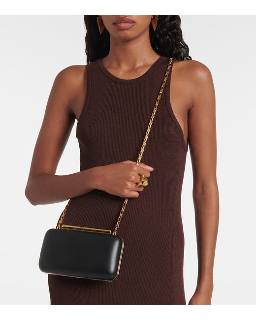 Material: leather. Lining: leather. Made in Italy. Designer color name: Black Gold. Includes: box, dust bag. Detachable chain shoulder strap. Closure: snap-clasp fastening. Hardware color: gold. Leather.