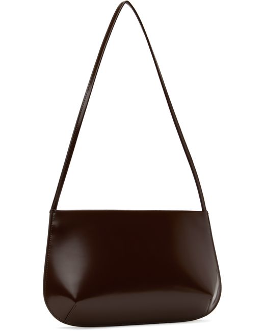 Polished spazzolato leather shoulder bag in brown. · Fixed shoulder strap · Magnetic closure · Patch pocket at interior · Twill lining · H6.5 x W11.5 x D2 Supplier color: Choc