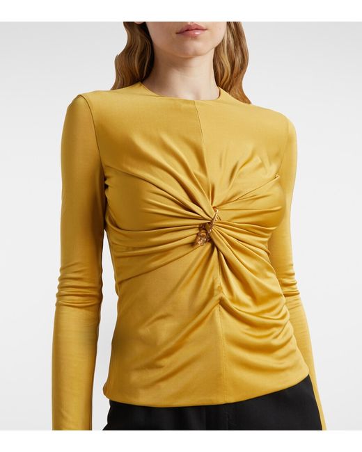 Material: 100% viscose. Care instructions: dry clean. Made in Italy. Designer color name: Antique Gold. Item color: gold.