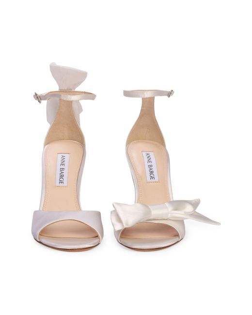 Round ankle strap sandals, set on a 100mm straight high heel. Featuring a square crystal-embellished buckle and a satin half bow on the back counter and front upper. Made with smooth satin Heel Height: 100mm / 4'' Imported. Lsd Shoes - Shoes Lsd Mp > Anne Barge > Saks Fifth Avenue > Barneys. Anne Barge. Color: White Satin. Size: 6.