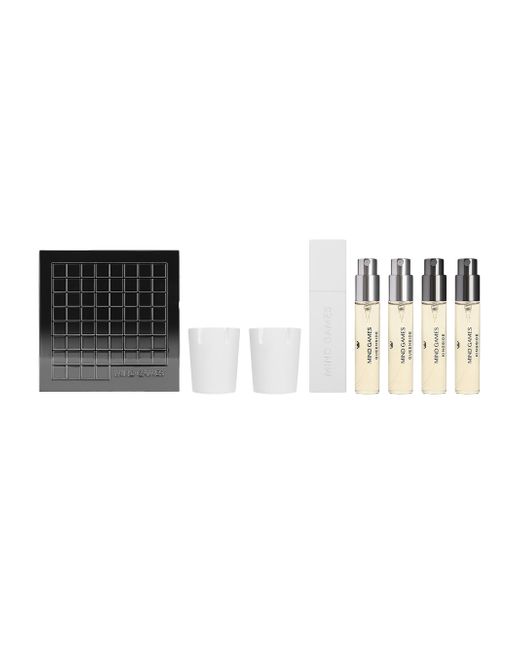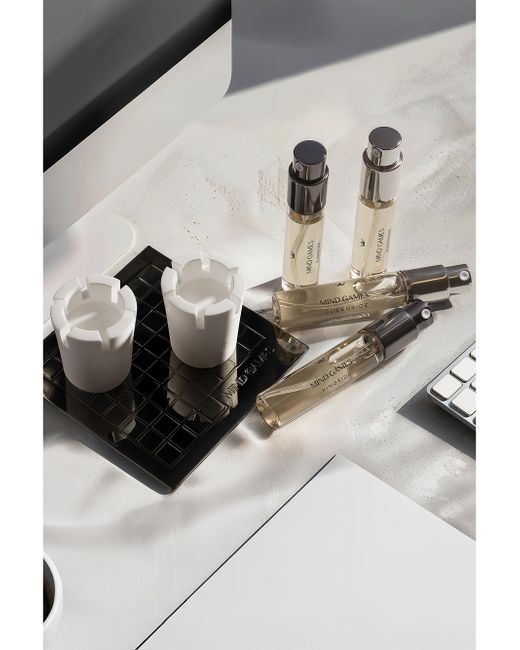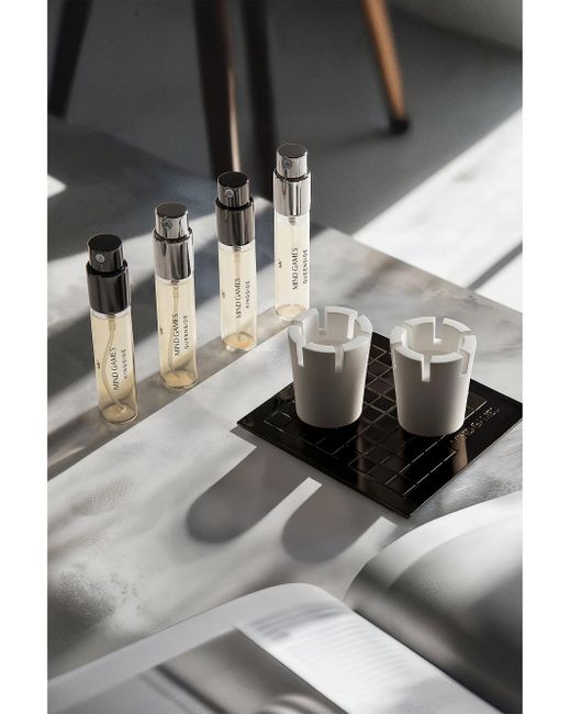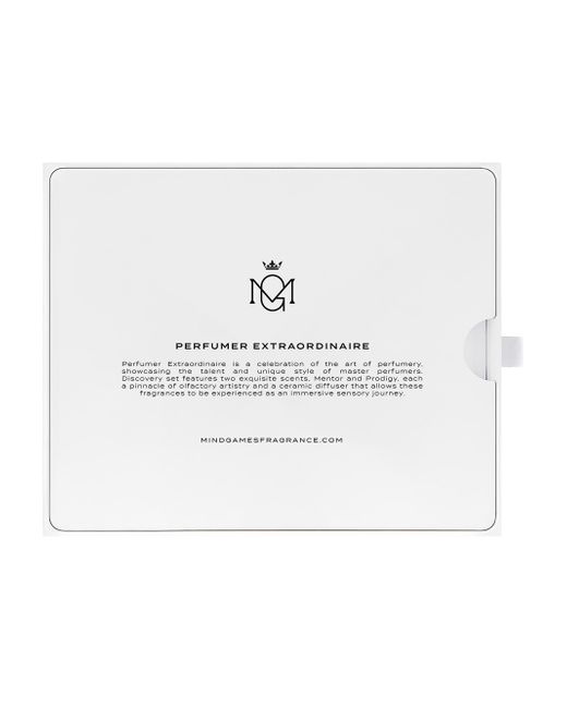 WHAT IT IS MIND GAMES Perfumer Extraordinaire Discovery Set is a limited-edition set featuring travel-size sprays of Perfumer Extraordinaire, a Zamac travel case, and ceramic diffusers. Experience the two fragrances on the skin or enhance any personal space and spray onto the Queen ceramic diffusers, and place the diffusers on the display stand. Made in Germany. SET INCLUDES Perfumer Extraordinaire Mentor Extrait de Parfum Vials, 2 x 0.25 fl oz. Perfumer Extraordinaire Prodigy Extrait de Parfum Vials, 2 x 0.25 fl. oz. Zamac Atomizer Case Display Stand Queen Ceramic Diffusers MENTOR NOTES Boya Oud Amber Tonka Bean Dark Plum PRODIGY NOTES Sandalwood Vanilla Blonde Woods Longoza Flower Rose Absolute Cinnamon Bergamot. Fragrances - Mind Games Fragrance > Mind Games > Saks Fifth Avenue > Barneys. Mind Games.