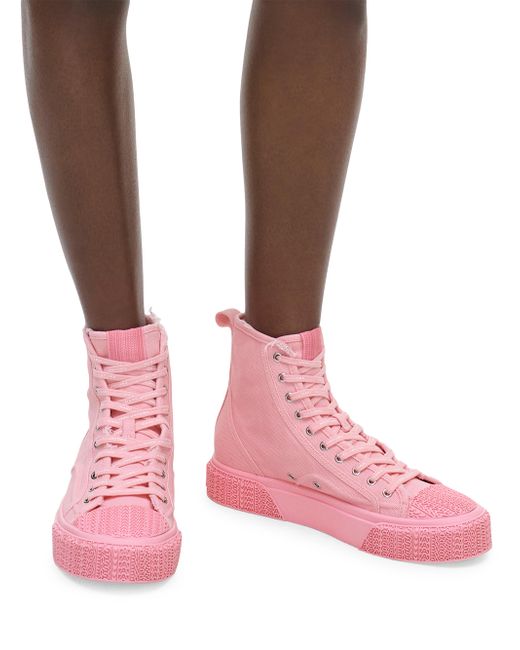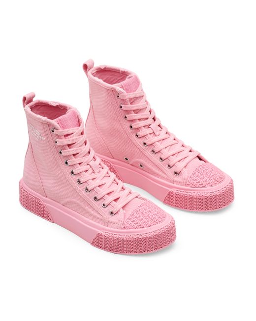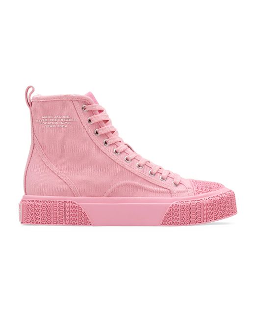 Marc Jacobs' sneakers are crafted of canvas for a classic, casual look. The high-top pair features a thick rubber sole for comfortable wear. Round toe Lace-up style Canvas upper Rubber sole Imported SIZE Platform: about 1.2". Women's Shoes - Workshop Shoes > Marc Jacobs > Saks Fifth Avenue > Barneys. Marc Jacobs. Color: Ribbon Pink. Size: 5.