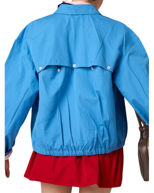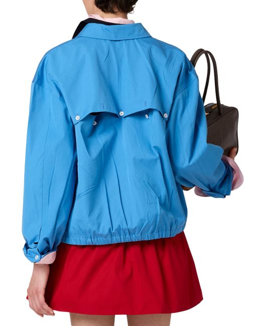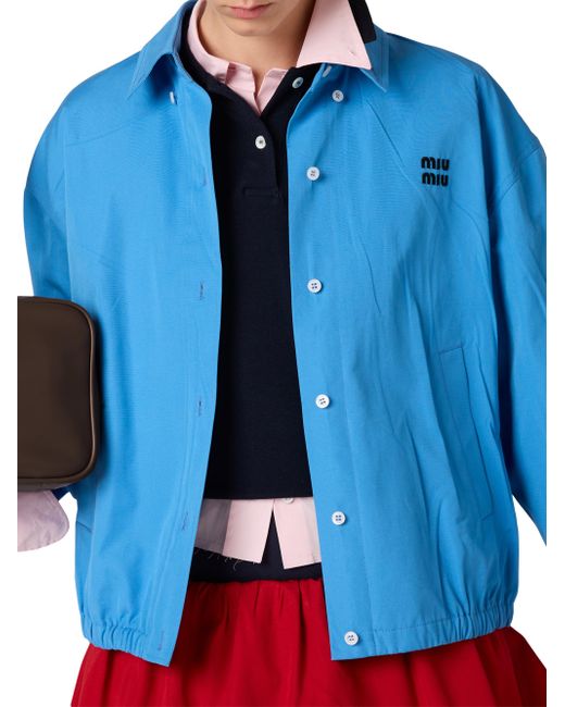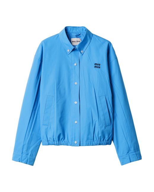 Lined garment Long sleeves Shirt collar Button closure Cuffs with strap and button Welt pockets Elasticized hem Embroidered logo Imported 100% Cotton - 100% Trochus Niloticus. Lsd Handbags - Miu Miu > Miu Miu > Saks Fifth Avenue > Barneys. Miu Miu. Color: Blue. Size: 4.
