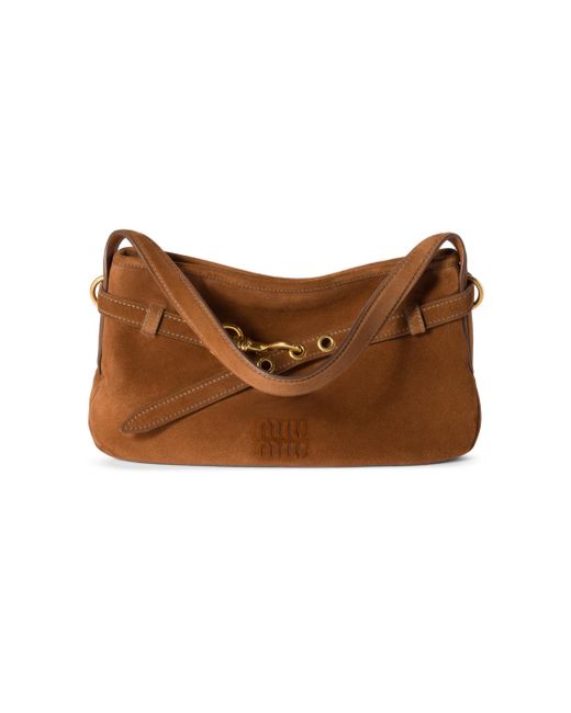 Suede handle for use as a handbag or shoulder bag Gold-tone hardware Zipper closure Cotton lining with zipper pocket Embossed lettering logo on the front Imported 100% Lamb Leather 33W x 19H x 5L cm / 12.9W x 7.4H x 1.9L in. Lsd Handbags - Miu Miu > Miu Miu > Saks Fifth Avenue > Barneys. Miu Miu. Color: Brown.