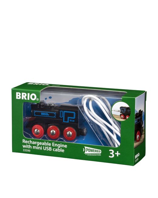 Expand your Brio train set with this rechargeable engine. Features working lights, it comes with a usb cable and moves forwards and backwards with a simple push of a button. Compatible with the brand's wooden train tracks, this classic engine will provide hours of railway fun.