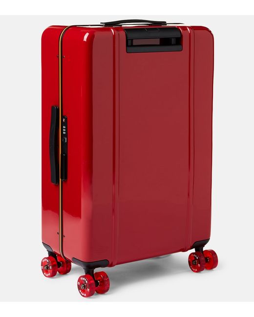 Material: polycarbonate. Lining: fabric. Made in China. Designer color name: Bahia Red. Item color: red. Internal details: two internal compartments, internal zipped pockets. Closure: integrated 3-digit TSA lock. Telescopic handle with adjustable length.