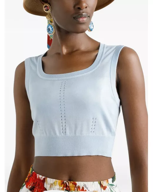 baby blue square neck sleeveless ribbed hem cropped