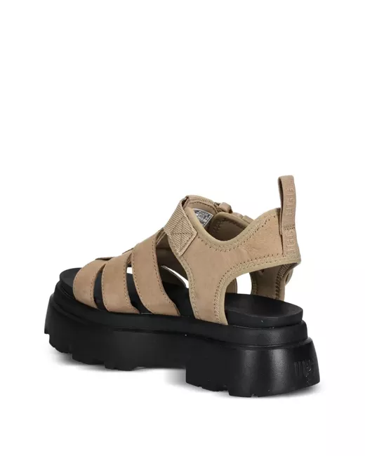 sand beige clasp fastening platform sole pull-tab at the heel round open toe