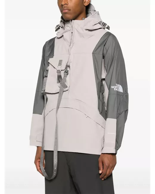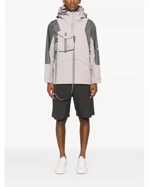 light grey front press-stud and zip fastening drawstring hood front pouch pocket touch-strap cuffs
