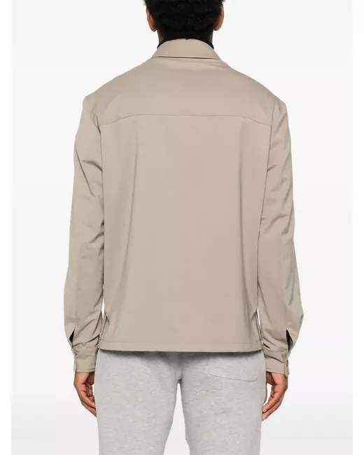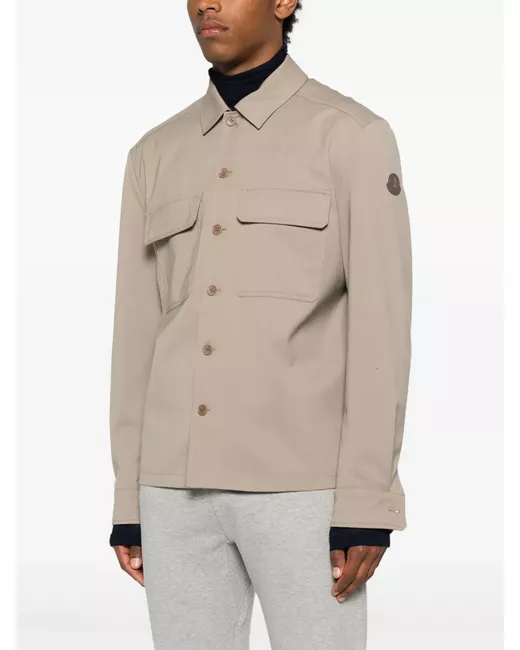 sand beige front button fastening buttoned cuffs two chest patch pockets short side slits