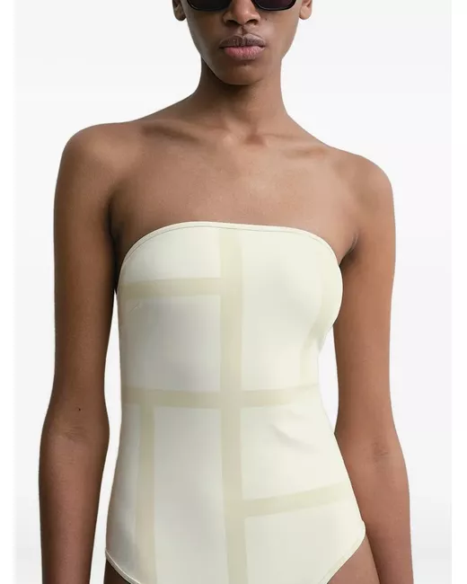 ecru bandeau style strapless full lining Be mindful to try on swimwear over your own garments.