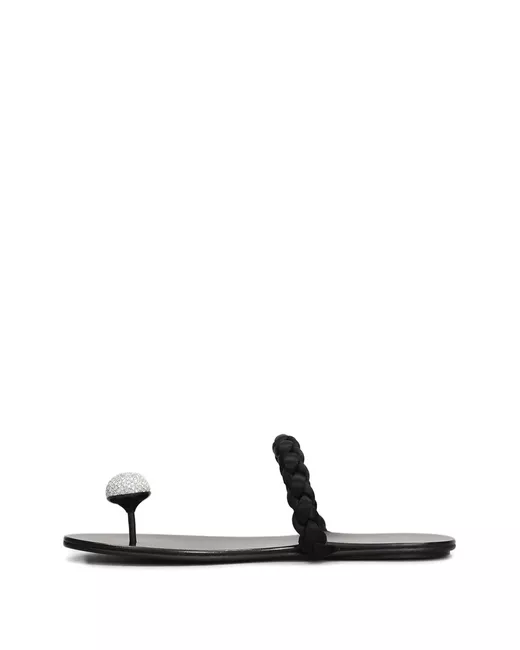 black Swarovski crystal embellishment braided strap flat sole