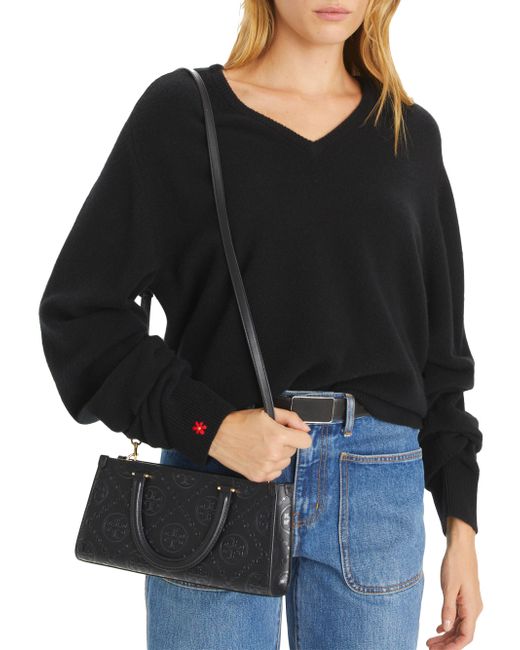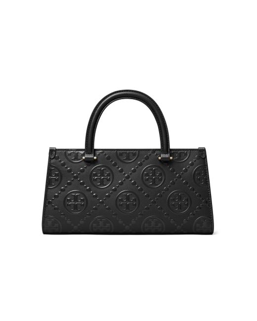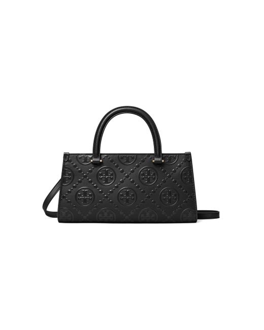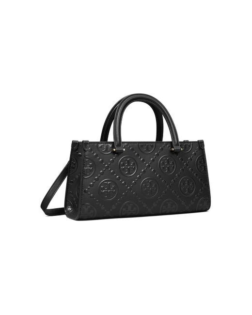 This Tory Burch Small T Monogram tote is crafted of leather and features a slip pocket, zip pocket, and a removable crossbody strap for added convenience. Two top handles Removable crossbody strap Interior: one slip and one zip pocket Top zip closure Leather Lining: textile/nylon Imported SIZE About 10.5"W x 5.25"H x 2.75"D Two top handles: about 3.25" drop Removable crossbody strap: about 21.5" drop ABOUT THE BRAND Since debuting her brand in 2004, New York-based designer Tory Burch has made an impact on the fashion world with her handbags and shoes, and playful-yet-polished clothing. Today, Burch remains inspired by color and travel, with her vibrant collections bursting with prints, and her instantly recognizable double-T logo drawing from Moroccan architecture. Handbags - Tory Burch Handbags > Tory Burch > Saks Fifth Avenue > Barneys. Tory Burch. Color: Black.